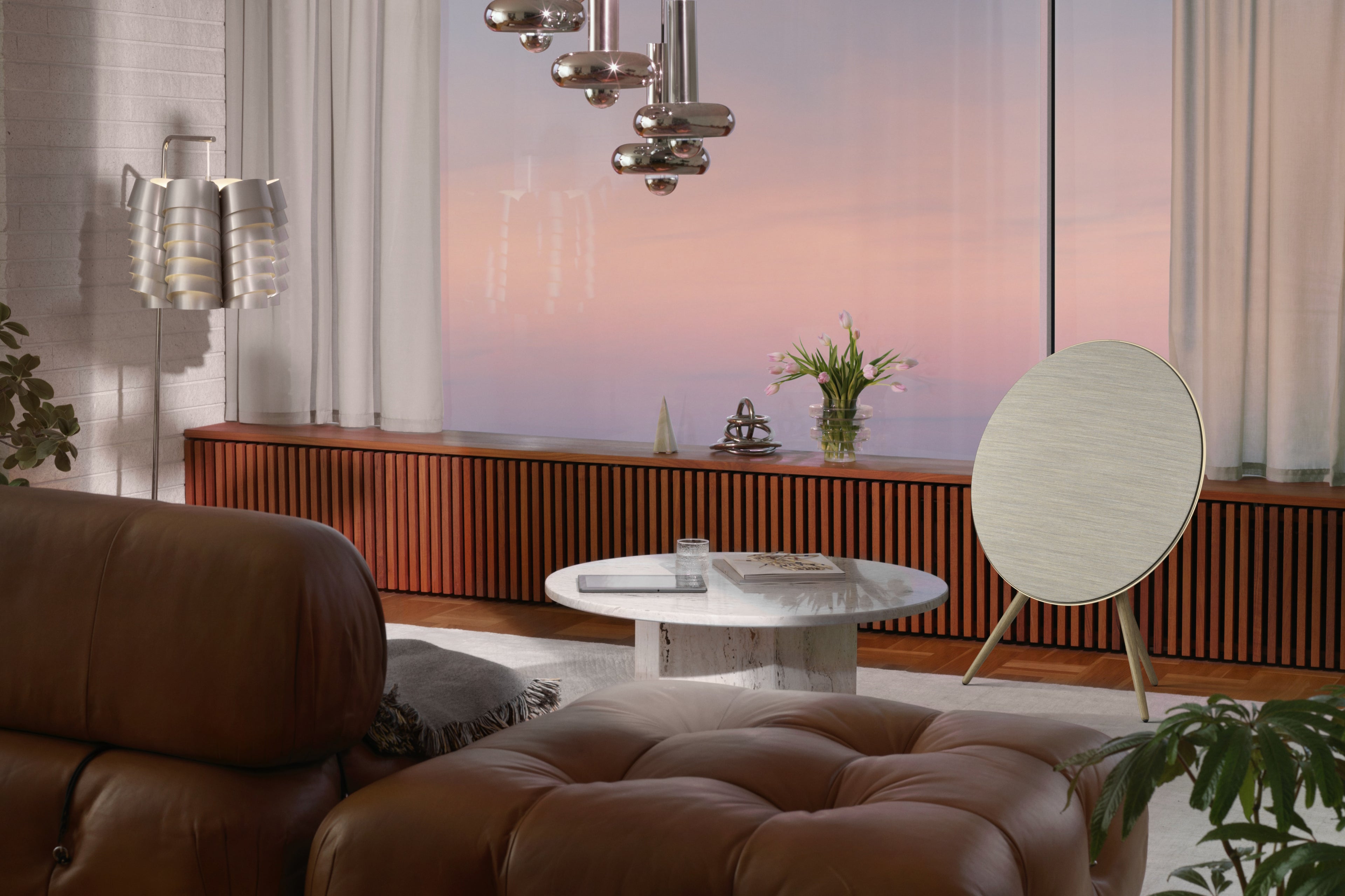 The Beoplay A9 makes no compromises between comfort and style. It was designed to adapt to your lifestyle at any time. You have the freedom to push it into a corner, place it in the middle of the room or hang it on the wall with the optional wall brackets. And no matter where it is placed, the integrated room adjustment switch always guarantees excellent sound.